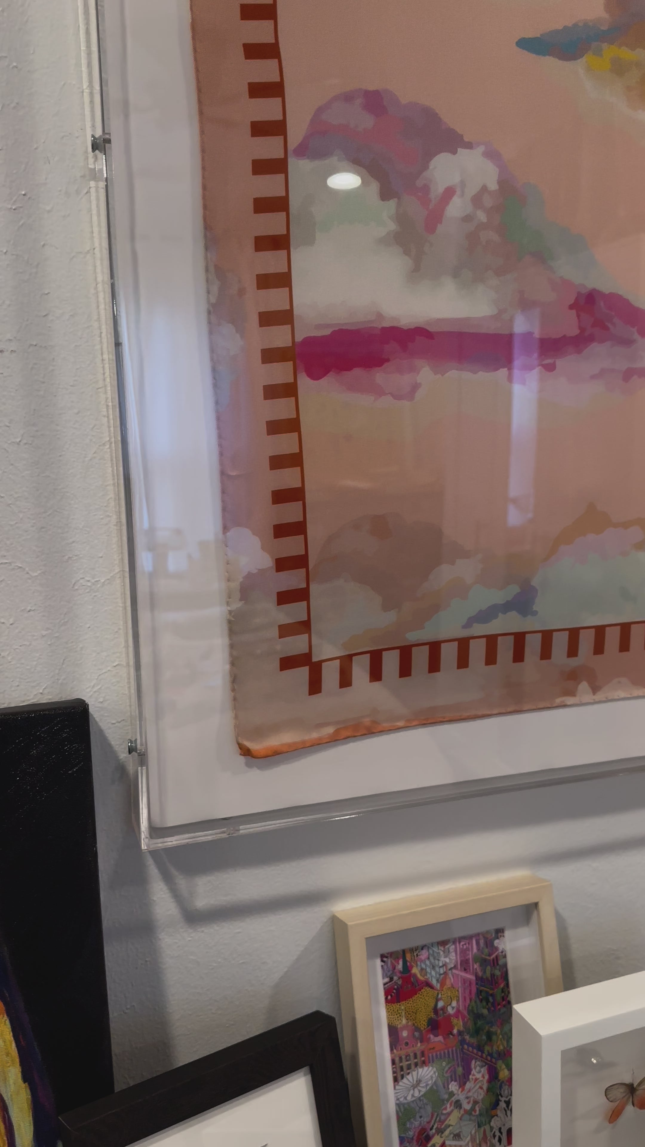 Custom Framed Silk Scarf - Pink Clouds in Acrylic Shadow Box